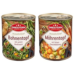 DREISTERN Bohneneintopf mit Rindfleisch, 800 g & Möhreneintopf mit Fleischklößchen, 800 g