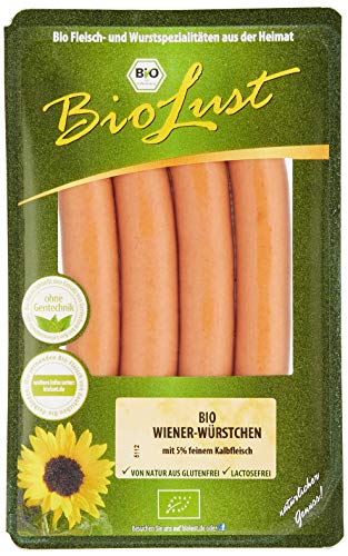 Ausgesuchtes Bio-Schweinefleisch , Bio- Kalbfleisch sowie edle Gewürze bilden die Grundlage für diese Bio-Wiener Würstchen. Nach alter Tradition in zarte Saitlinge gefüllt und sanft über Buchenholz geräuchert, so erhalten sie ihr würziges Aroma. Ob heiß oder kalt sind sie knackig im Biss und schmecken bei jeder Gelegenheit.