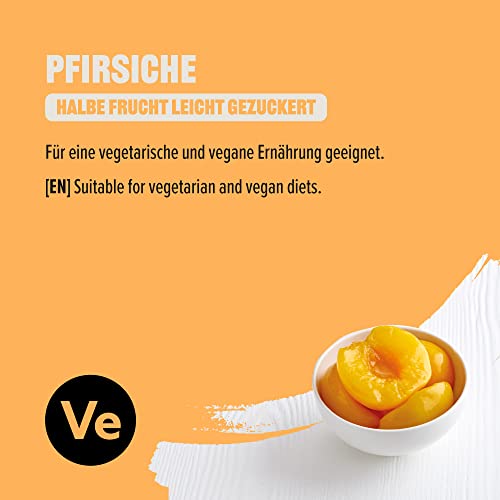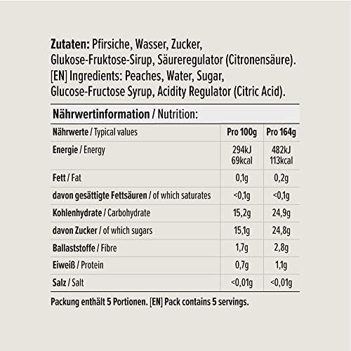 Pfirsiche (58%), Wasser, Zucker, Glukose-Fruktosesirup, Säureregulator (Citronensäure).