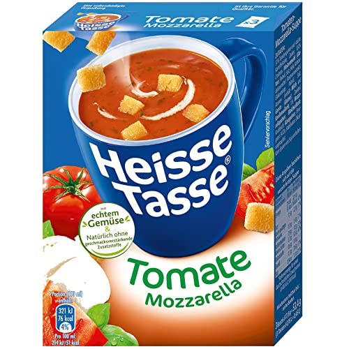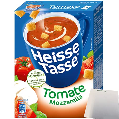 Heisse Tasse Tomate-Mozzarellasuppe 1er Pack (3 Beutel a 17,8g) + usy Block
