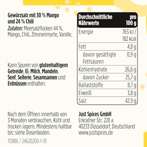 Meersalzflocken 44 %, Mango, Chili, Zitronenmyrte, Vanille.