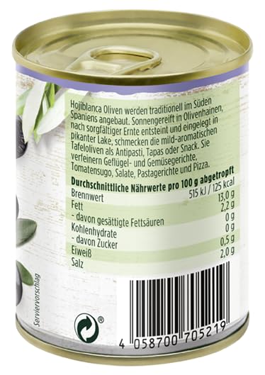 Zutaten: Wasser, Oliven, Salz, Stabilisator: Eisen-II-gluconat..