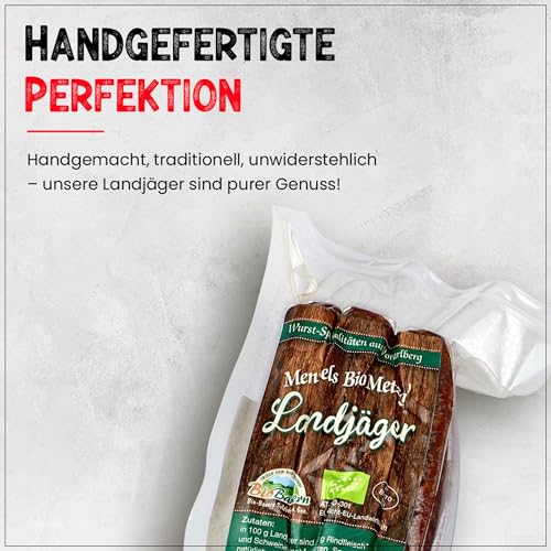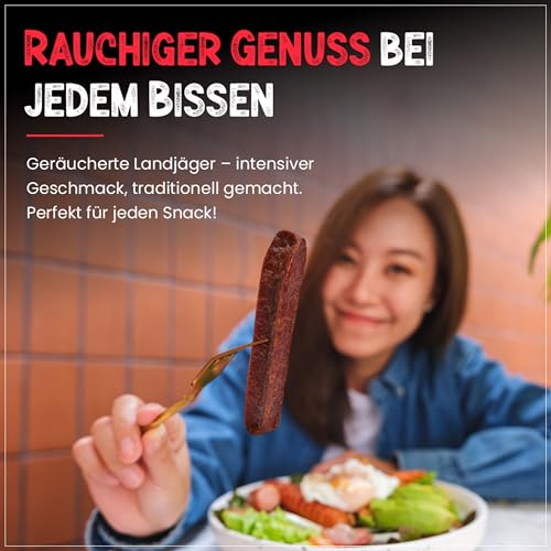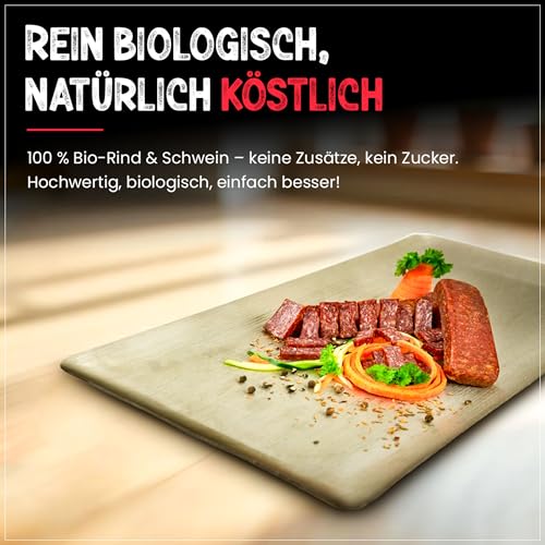 PALEO TO GO Bio Landjäger 6 Paar (à 70 g) – Premium Rohwurst-Spezialität aus Rind- und Schweinefleisch – 100% natürlich & ohne Zusätze – geräucherte Snack Wurst – herzhaft & aromatisch