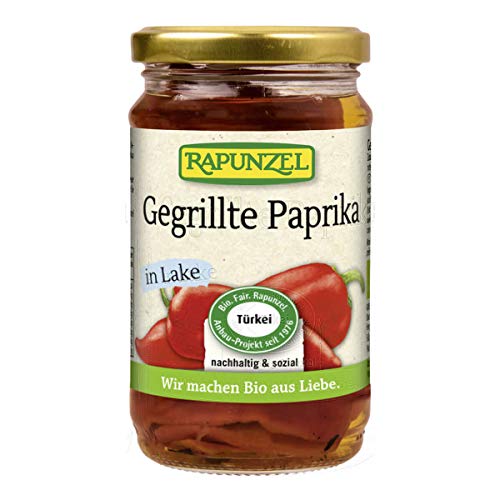 Rapunzel – Paprika gegrillt rot in Lake Projekt – 0,31 kg – 6er Sparpack Sonnengereifte Paprika der Sorte’Capia‘ aus dem Rapunzel Türkei-Projekt. Die von Hand geernteten Paprikas werden in einem speziellen Ofen direkt über Feuer gegrillt. Das verleiht ihnen den typischen Grillgeschmack. Die Paprikas schmecken aromatisch-fruchtig und sind vielseitig verwendbar. Verwendung ideal als Vorspeise, als köstliche Beilage, Pizzabelag und für Reisgerichte