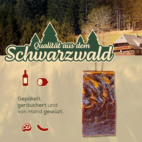 HERZHAFT RAUCHIGES AROMA: Unser Speck aus dem Schwarzwald ist jeden Bissen wert! Das feste und trotzdem zarte Fleisch kommt von einem Bauchspeck mit hohem Fettanteil, wodurch der charakteristische Geschmack entsteht