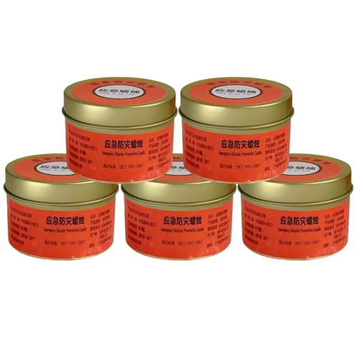 Survival Kerzen, Set mit 5 rauchfreien Sturmkerzen, 20-30 Stunden Brenndauer, Mehrzweckausrüstung für Notfälle, Survival und Outdoor-Aktivitäten