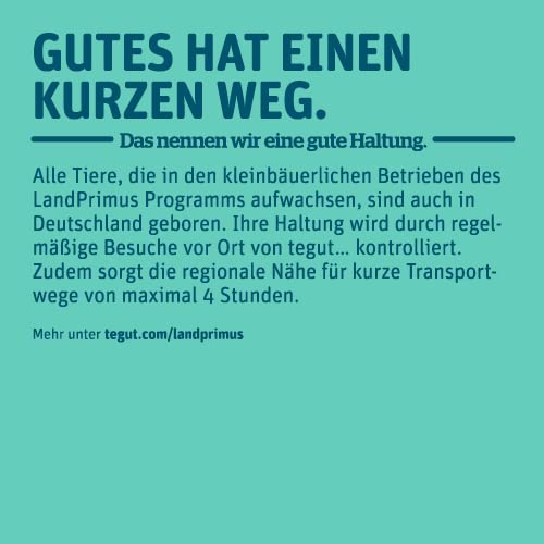 Unser Qualitätsprogramm tegut… LandPrimus steht seit über 25 Jahren für ein ausgewähltes Sortiment an hochwertigem Fleisch und feinen Wurstspezialitäten. Und ist auch deshalb so erfolgreich, weil wir in partnerschaftlicher Zusammenarbeit mit unseren Vertragslandwirt:innen aus deutschen Regionen vor allem auf kontrolliert artgerechte Tierhaltung setzen. Das Programm wurde gemeinsam mit den Menschen vor Ort entwickelt. Das erklärte Ziel von Anfang an: bessere Haltungsbedingungen für die Tiere.