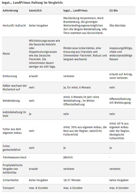 Unser Qualitätsprogramm tegut… LandPrimus steht seit über 25 Jahren für ein ausgewähltes Sortiment an hochwertigem Fleisch und feinen Wurstspezialitäten. Und ist auch deshalb so erfolgreich, weil wir in partnerschaftlicher Zusammenarbeit mit unseren Vertragslandwirt:innen aus deutschen Regionen vor allem auf kontrolliert artgerechte Tierhaltung setzen. Das Programm wurde gemeinsam mit den Menschen vor Ort entwickelt. Das erklärte Ziel von Anfang an: bessere Haltungsbedingungen für die Tiere.