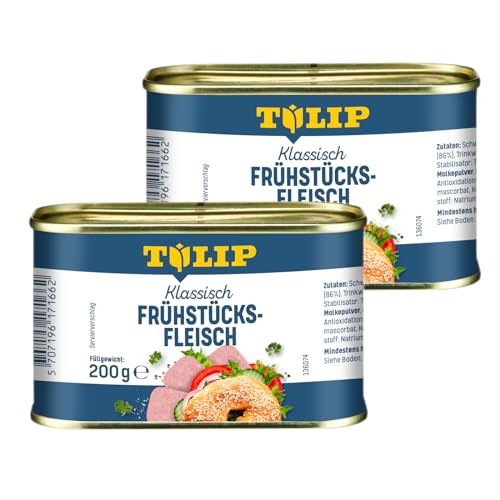 TULIP 2x Schweine-Frühstücksfleisch 200g | leckeres Schweinefleisch in der praktischen recycelbaren Konserve | Schweine-Frühstücksfleisch in der Dose | 86% Schweinefleisch