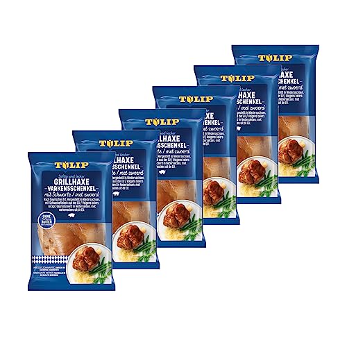 TULIP 6x 600 g Grill-Haxe mit Schwarte | Tafelfertig Kross Gegart Vakuumverpackt | Schweinshaxe einfach im Backofen zubereitet in ca. 30-40 Minuten | Ohne Kühlung