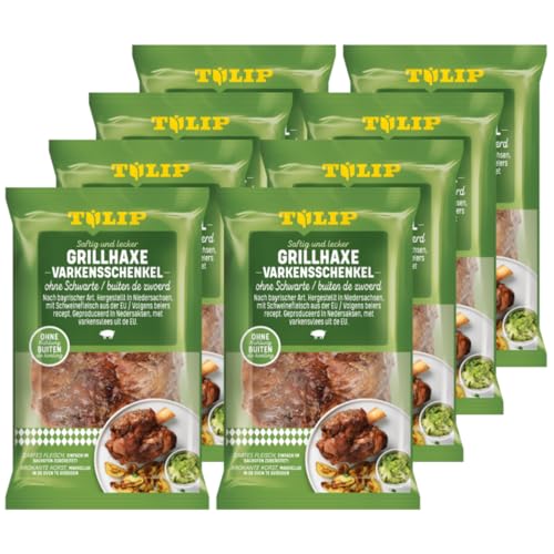 TULIP 8x 500g Haxe ohne Schwarte | Besonders zart & saftig gegart | Tafelfertig vakuumverpackt | Herzhafter Fleischgenuss in 35 Min. | Grillhaxe ohne Kühlung haltbar